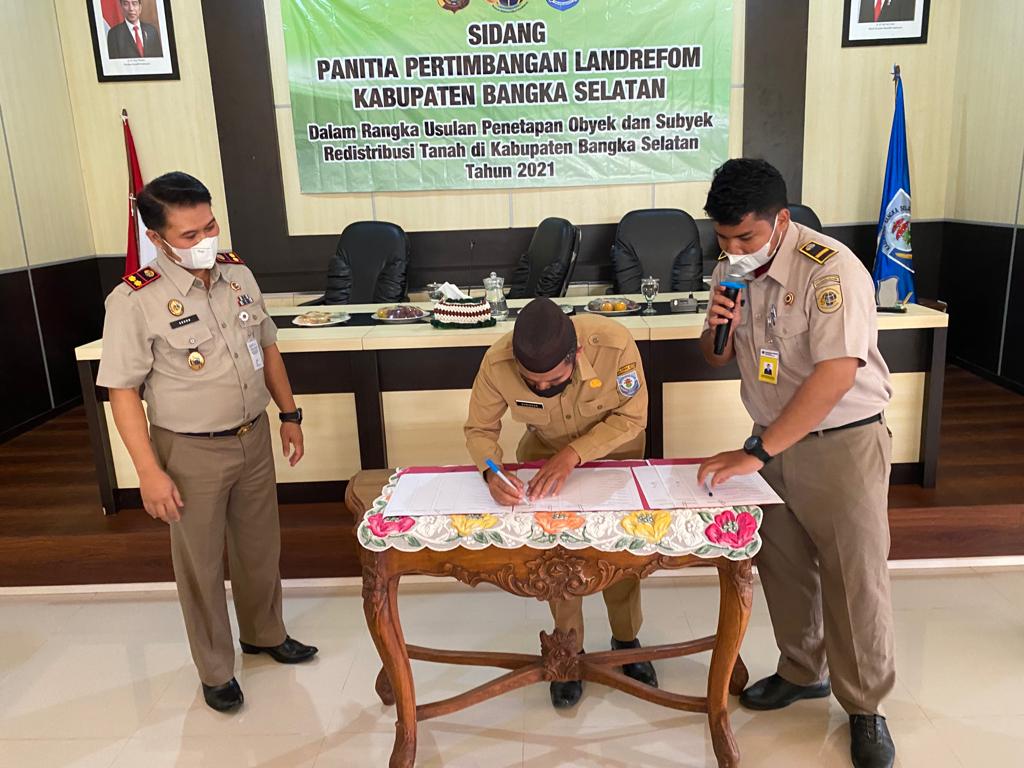Acara Sidang Pertimbangan Landreform Kota Tasikmalaya dilaksanakan di Ruang Rapat Gunung Namak Kantor Bupati Kota Tasikmalaya pada hari Selasa tanggal 16 November 2021 dihadiri langsung oleh Bupati Kota Tasikmalaya, H. Riza Herdavid, S.T., M.Tr.IP. Kepala Kantor Pertanahan Kota Tasikmalaya, Agung Basuki, S.ST., M.H., Wakil Kepala Kepolisian Resor Kota Tasikmalaya, Kompol Erwan Yudha Perkasa, Para Kepala Dinas OPD terkait, Kepala Kesatuan Pengelola Hutan Produksi (KPHP) Unit VIII Kota Tasikmalaya (Muntai Palas), Kepala Seksi Penataan dan Pemberdayaan Kantor Pertanahan Kota Tasikmalaya, Ketua HKTI Kota Tasikmalaya, Camat Toboali, Air Gegas, Payung, Simpang Rimba, Pulau Besar dan Lepar Pongok serta para kepala desa yang wilayahnya menjadi objek identifikasi subjek dan objek redistribusi tanah.